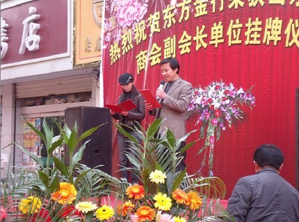 2010年11月10日上午,山東省珠寶商會(huì)會(huì)長(zhǎng)杜磊同志率隊(duì)到臨沂-沂南縣和沂水縣調(diào)研,先后參觀了沂南和沂水珠寶金店并參加了沂南東方金行"榮獲山東省珠寶商會(huì)副會(huì)長(zhǎng)單位掛牌儀式暨擴(kuò)建竣工慶典”活動(dòng)。